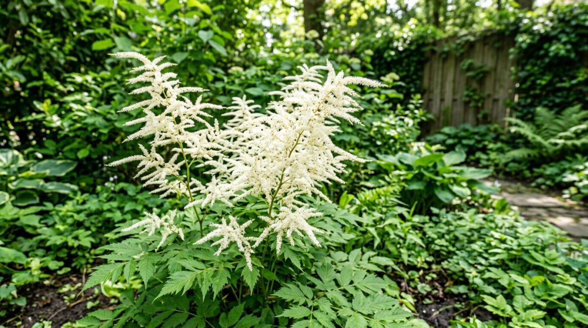 Donkere hoekjes vragen om planten die weinig zonlicht nodig hebben en toch aantrekkelijk blijven. De geitenbaard past daar uitstekend bij. Door zijn aanpassingsvermogen gedijt hij juist waar andere planten het moeilijk hebben. Met wat extra compost en een goed vochtige bodem krijgt hij een vliegende start.